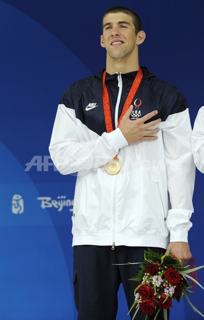 【8月11日 AFP】(写真追加)北京五輪第4日、競泳・男子4x100メートルリレー決勝。米国チームは、世界新記録となる3分08秒24で金メダルを獲得し、マイケル・フェルプス(Michael Phelps)は前人未到の8冠に一歩前進した。