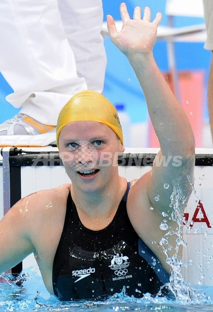 【8月12日 AFP】(写真追加、記事更新)北京五輪第5日、競泳・女子100メートル平泳ぎ決勝。オーストラリアのリーゼル・ジョーンズ(Leisel Jones)は、五輪記録となる1分05秒17で優勝を果たし、金メダルを獲得した。