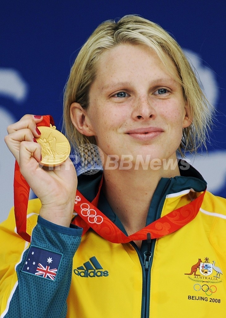 【8月12日 AFP】(写真追加、記事更新)北京五輪第5日、競泳・女子100メートル平泳ぎ決勝。オーストラリアのリーゼル・ジョーンズ(Leisel Jones)は、五輪記録となる1分05秒17で優勝を果たし、金メダルを獲得した。