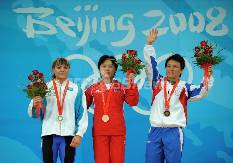 五輪 パク・ヒョンスク ウエイトリフティング・女子63キロ級で金メダル獲得 2008年8月12日 19:53 発信地:北京/中国 [ 中国・台湾 中国 ] このニュースをシェア ‹ › ❮ 2/3 ❯ 表彰台でポーズをとる(左から)銀メダリストのイリーナ・ネクラソワ(%%Irina Nekrassova%%)、パク・ヒョンスク、銅メダリストの盧映錡(%%Lu Ying-Chi%%)。(2008年8月12日撮影)(c)AFP/JUNG YEON-JE 画像作成中 ! 【8月12日 AFP】北京五輪第5日、ウエイトリフティング・女子63キロ級決勝。北朝鮮のパク・ヒョンスク(Pak Hyon Suk)は、合計241キロ(スナッチ106キロ、ジャーク135キロ)を記録し、金メダルを獲得した。(c)AFP 五輪 一覧へ> メディア・報道関係・法人の方向け 写真・動画 購入のお問合せ>
