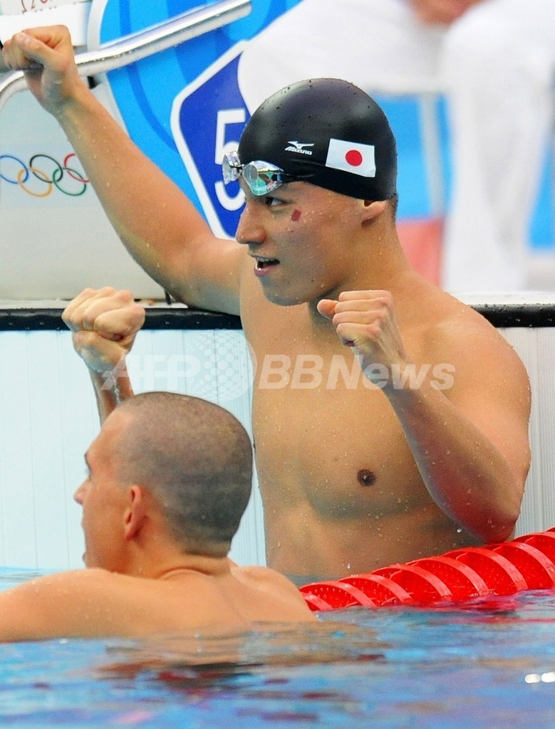 五輪 松田 男子200メートルバタフライで銅メダル 2008年8月13日 12:13 発信地:北京/中国 [ 中国・台湾 中国 ] このニュースをシェア ‹ › ❮ 1/2 ❯ 北京五輪競泳・男子200メートルバタフライで銅メダルを獲得し、ガッツポーズを見せる松田丈志(右)。(2008年8月13日撮影)(c)AFP/FRANCOIS-XAVIER MARIT 画像作成中 ! 【8月13日 AFP】北京五輪第6日、競泳・男子200メートルバタフライ決勝。日本の松田丈志(Takeshi Matsuda)は、日本新記録となる1分52秒97を記録して3位入賞を果たし、銅メダルを獲得した。(c)AFP 五輪 一覧へ> メディア・報道関係・法人の方向け 写真・動画 購入のお問合せ>