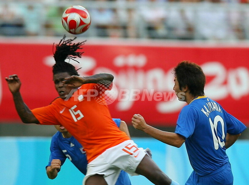 五輪 日本 オランダに敗れ3連敗で北京五輪を終える 2008年8月13日 21:54 発信地:瀋陽/中国 [ 中国・台湾 中国 ] このニュースをシェア ‹ › ❮ 9/15 ❯ ボールをヘディングするオランダのロイステン・ドレンテ(%%Royston Drenthe%%、左)。(2008年8月13日撮影)(c)AFP 画像作成中 ! 【8月13日 AFP】北京五輪、男子サッカー・一次リーグB組、オランダ対日本。試合はすでに一次リーグ敗退が決まっている日本が0-1でオランダに敗れ、3連敗でB組最下位に終わった。一方で勝ったオランダはB組2位で決勝トーナメント進出を決めた。(c)AFP 五輪 一覧へ> メディア・報道関係・法人の方向け 写真・動画 購入のお問合せ>