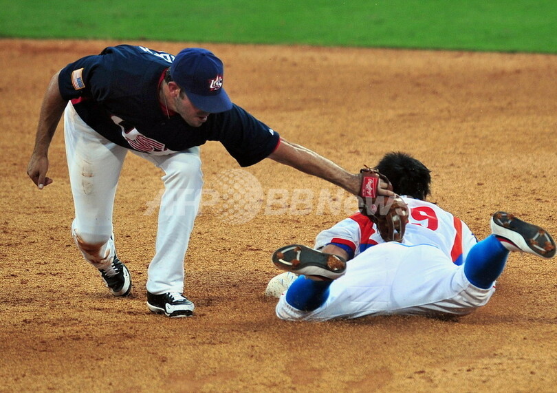 五輪 韓国 米国にサヨナラ勝ちし初戦白星スタート 2008年8月13日 23:01 発信地:北京/中国 [ 中国・台湾 中国 ] このニュースをシェア ‹ › ❮ 3/8 ❯ 韓国の李鐘旭(%%Lee Jongwook%%)をタッチアウトにする米国のブライアン・バーデン(%%Brian Barden%%)。(2008年8月13日撮影)(c)AFP/Frederic J. BROWN 画像作成中 ! 【8月13日 AFP】北京五輪第6日、野球・一次リーグ、韓国対米国。試合は韓国が8-7で米国から逆転サヨナラ勝ちを収め、初戦を白星で飾った。(c)AFP 五輪 一覧へ> メディア・報道関係・法人の方向け 写真・動画 購入のお問合せ>