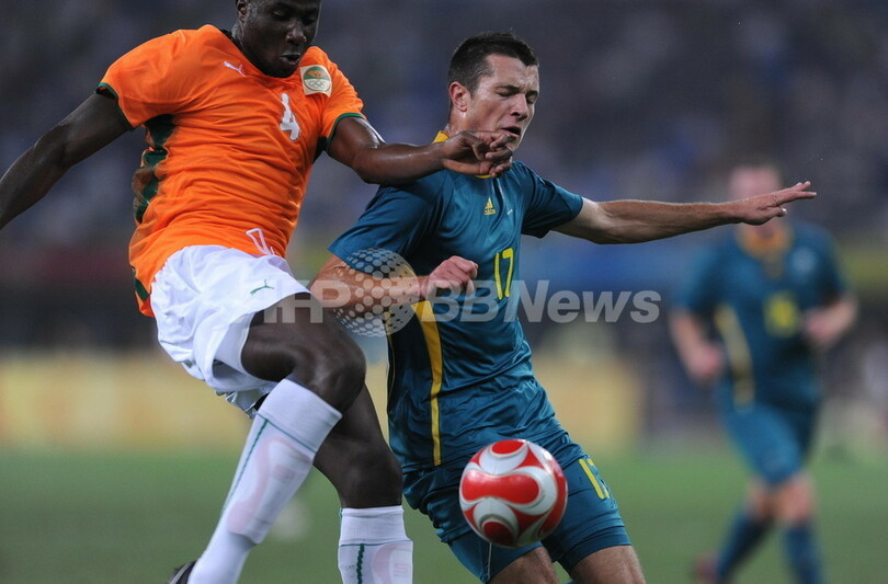 五輪 コートジボワール 決勝トーナメント進出 2008年8月13日 23:08 発信地:天津/中国 [ 中国・台湾 中国 ] このニュースをシェア ‹ › ❮ 2/2 ❯ コートジボワールのスレイマン・バンバ(%%Souleymane Bamba%%、左)と競り合うオーストラリアのニキタ・ルカビチャ(%%Nikita Rukavytsya%%、右)。(2008年8月13日撮影)(c)AFP/Peter PARKS 画像作成中 ! 【8月13日 AFP】北京五輪、男子サッカー・一次リーグA組、コートジボワール対オーストラリア。試合はコートジボワールが1-0でオーストラリアを下し、A組2位で決勝トーナメント進出を決めた。(c)AFP 五輪 一覧へ> メディア・報道関係・法人の方向け 写真・動画 購入のお問合せ>