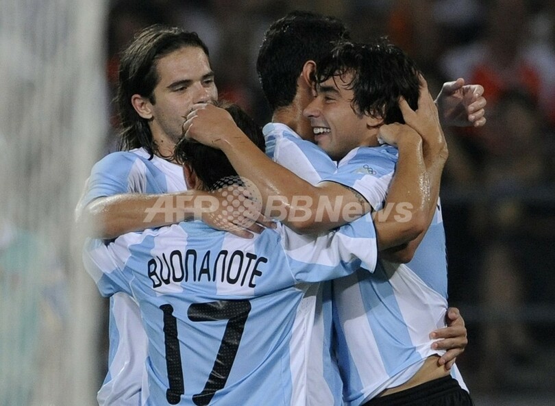 アテネ五輪で金メダルを獲得したアルゼンチンは、リオネル・メッシ(Lionel Messi)をはじめセルヒオ・アグエロ(Sergio Aguero)らスター選手を先発メンバーから外して試合に臨んだが、勝利を収め一次リーグを三戦全勝で終えた。アルゼンチンは準々決勝でオランダと対戦する。(c)AFP