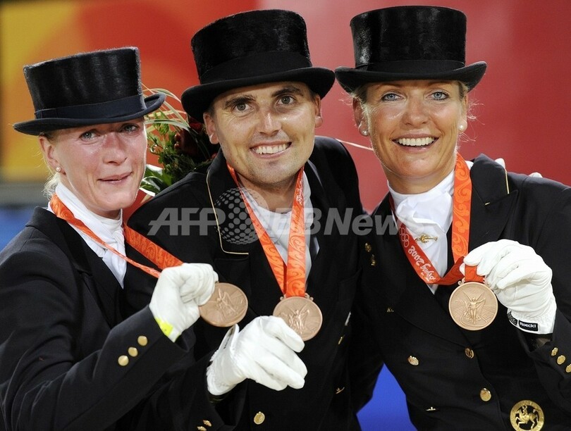 五輪 ドイツ 馬場馬術団体グランプリで金メダル獲得 2008年8月15日 10:27 発信地:香港 このニュースをシェア ‹ › ❮ 2/5 ❯ 銅メダルを掲げるデンマークの(左から)%%Anne van Olst%%、%%Nathalie zu Sayn-Wittgenstein%%、アンドレアス・ヘルグストランド(%%Andreas Helgstrand%%)。(2008年8月14日撮影)(c)AFP/DDP/DAVID HECKER 画像作成中 ! 【8月15日 AFP】北京五輪第7日、馬場馬術団体グランプリ決勝。ドイツは計72.917点を記録し、金メダルを獲得した。また、銀メダルは計71.750点を記録したオランダが、銅メダルは計68.875点を記録したデンマークが獲得した。(c)AFP 五輪 一覧へ> メディア・報道関係・法人の方向け 写真・動画 購入のお問合せ>