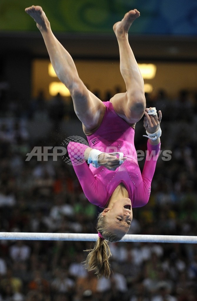 【8月15日 AFP】北京五輪第8日、体操女子・個人総合決勝。米国のナスティア・リューキン(Nastia Liukin)は、合計63.325点を記録して金メダルを獲得した。