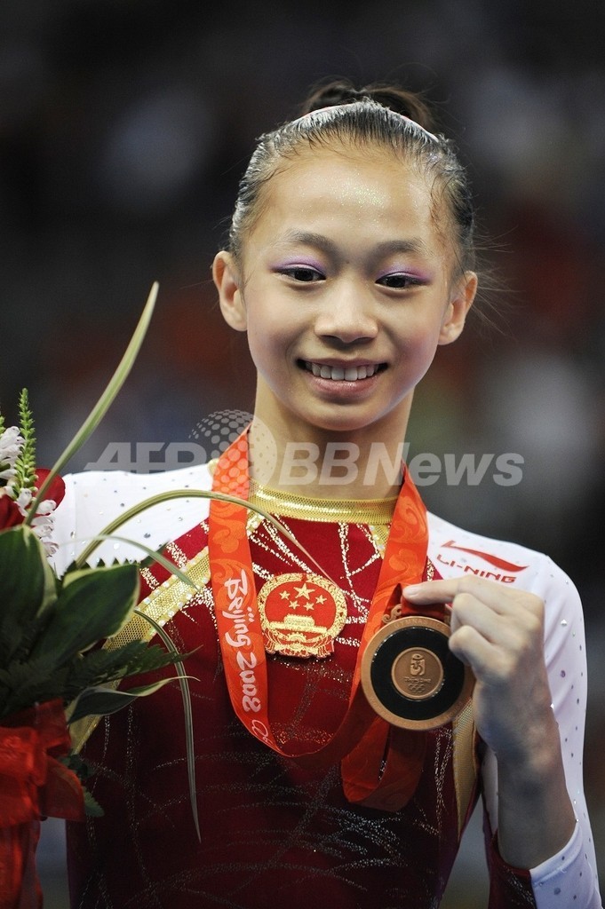 また、銀メダルは62.725点を記録した同じく米国のショーン・ジョンソン(Shawn Johnson)が、銅メダルは62.650点を記録した中国の楊伊琳(Yang Yilin)が獲得した。(c)AFP