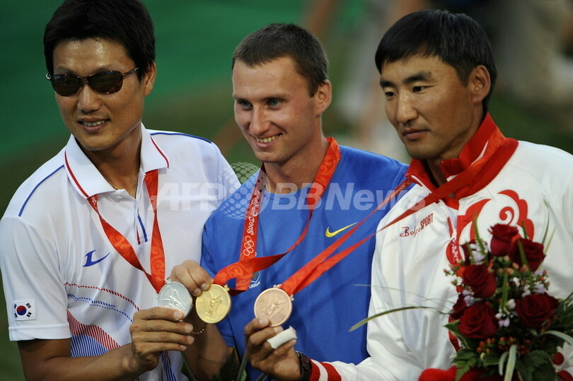 五輪 ルーバン アーチェリー男子個人で金メダルを獲得 2008年8月15日 20:47 発信地:北京/中国 [ 中国・台湾 中国 ] このニュースをシェア アーチェリー男子個人決勝の表彰式に臨む(左から)銀メダルの朴敬模、金メダルのビクトール・ルーバン、銅メダルのバイル・バデノフ(%%Bair Badenov%%)。(2008年8月15日撮影)(c)AFP/FRANCK FIFE 【8月15日 AFP】北京五輪第8日、アーチェリー男子個人決勝。ウクライナのビクトール・ルーバン(Viktor Urban)は、韓国の朴敬模(Kyung-Mo Park、パク・キョンモ)と対戦。ルーバンは113-112で朴を下し、金メダルを獲得した。(c)AFP 五輪 一覧へ> メディア・報道関係・法人の方向け 写真・動画 購入のお問合せ>