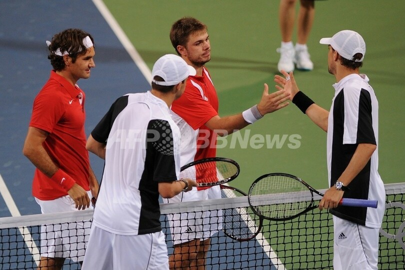 【8月16日 AFP】北京五輪第8日、テニス・男子ダブルス準決勝。大会第4シードのロジャー・フェデラー(Roger Federer)/スタニスラス・ワウリンカ(Stanislas Wawrinka、スイス)組は、大会第1シードでボブ・ブライアン(Bob Bryan)/マイク・ブライアン(Mike Bryan、米国)組と対戦。フェデラー/ワウリンカ組はセットカウント2-0(7-6、6-4)のストレートでブライアン兄弟を下し、決勝戦へ進出を決めた。(c)AFP