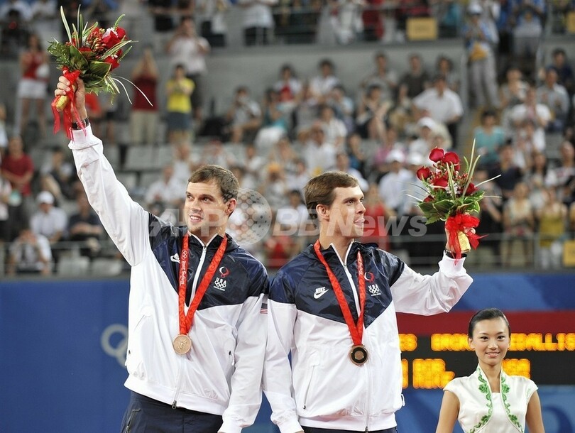 五輪 ブライアン兄弟 北京五輪で銅メダル 2008年8月17日 9:31 発信地:北京/中国 [ 中国・台湾 中国 ] このニュースをシェア ‹ › ❮ 1/3 ❯ 北京五輪テニス・男子ダブルスで銅メダルを獲得し表彰式に臨む米国のボブ・ブライアン(左)とマイク・ブライアン。(2008年8月16日撮影)(c)AFP/PHILIPPE HUGUEN 画像作成中 ! 【8月17日 AFP】北京五輪第9日、テニス・男子ダブルス3位決定戦。大会第1シードのボブ・ブライアン(Bob Bryan、米国)/マイク・ブライアン(Mike Bryan、米国)組は、フランスのアルノー・クレマン(Arnaud Clement)/ミカエル・ロドラ(Michael Llodra)組と対戦。ブライアン兄弟はセットカウント2-1(3-6、6-3、6-4)でクレマン/ロドラ組を下し、銅メダルを獲得した。(c)AFP 五輪 一覧へ> メディア・報道関係・法人の方向け 写真・動画 購入のお問合せ>