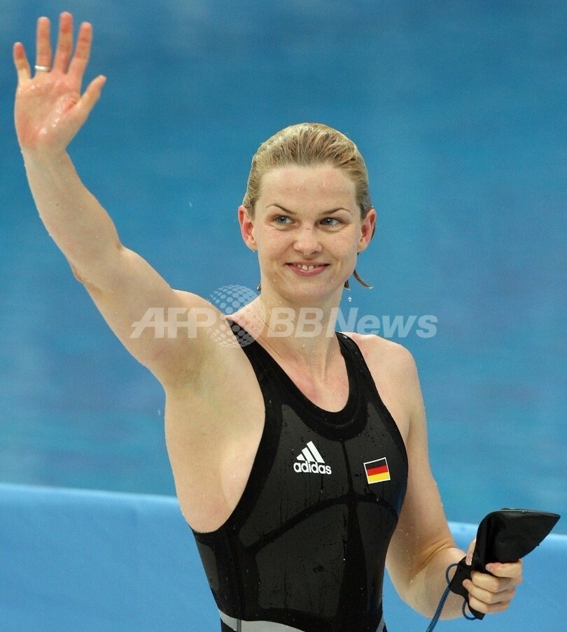 【8月17日 AFP】(写真追加)北京五輪第10日、競泳・女子50メートル自由形決勝。ドイツのブリッタ・シュテフェン(Britta Steffen)は、五輪新記録となる24秒06を記録して、金メダルを獲得した。シュテフェンは同100メートルとの2冠を達成した。