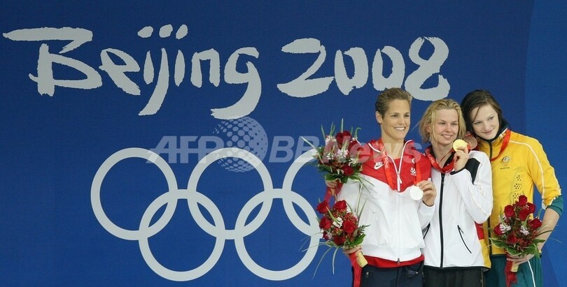【8月17日 AFP】(写真追加)北京五輪第10日、競泳・女子50メートル自由形決勝。ドイツのブリッタ・シュテフェン(Britta Steffen)は、五輪新記録となる24秒06を記録して、金メダルを獲得した。シュテフェンは同100メートルとの2冠を達成した。