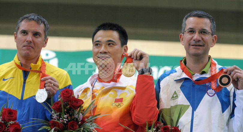 【8月17日 AFP】北京五輪第10日、射撃・男子50メートルライフル3姿勢決勝。中国の邱健(Qiu Jian)は、合計1272.5点を記録し金メダルを獲得した。