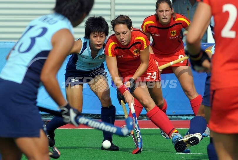 五輪 日本 ドイツに敗れ9-10位決定戦へ 2008年8月18日 12:39 発信地:北京/中国 [ 中国・台湾 中国 ] このニュースをシェア ‹ › ❮ 4/4 ❯ ドイツのマイケ・シェクル(%%Maike Stoeckel%%、中央)とボールを競り合う日本の千葉香織(%%Kaori Chiba%%)。(2008年8月18日撮影)(c)AFP/AAMIR QURESHI 画像作成中 ! 【8月18日 AFP】北京五輪第11日、ホッケー・女子一次リーグB組、ドイツ対日本。試合は日本が0-1でドイツに敗れた。この結果、日本は1勝3敗1分けの勝ち点4でB組5位となり、9-10位決定戦に回ることになった。一方、勝ったドイツは4勝1敗の勝ち点12で同組首位を決め、準決勝に進出した。(c)AFP 五輪 一覧へ> メディア・報道関係・法人の方向け 写真・動画 購入のお問合せ>