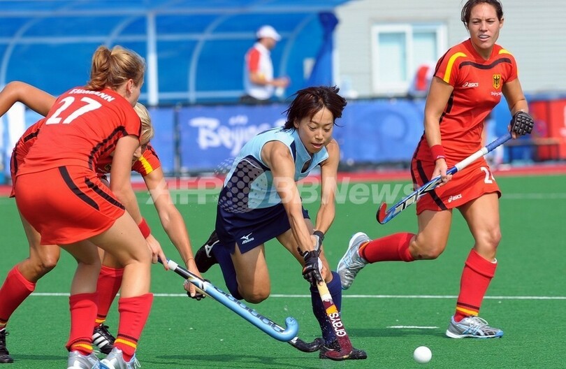 五輪 日本 ドイツに敗れ9-10位決定戦へ 2008年8月18日 12:39 発信地:北京/中国 [ 中国・台湾 中国 ] このニュースをシェア ‹ › ❮ 3/4 ❯ ボールを運ぶ日本の千葉香織(%%Kaori Chiba%%、中央)。(2008年8月18日撮影)(c)AFP/AAMIR QURESHI 画像作成中 ! 【8月18日 AFP】北京五輪第11日、ホッケー・女子一次リーグB組、ドイツ対日本。試合は日本が0-1でドイツに敗れた。この結果、日本は1勝3敗1分けの勝ち点4でB組5位となり、9-10位決定戦に回ることになった。一方、勝ったドイツは4勝1敗の勝ち点12で同組首位を決め、準決勝に進出した。(c)AFP 五輪 一覧へ> メディア・報道関係・法人の方向け 写真・動画 購入のお問合せ>