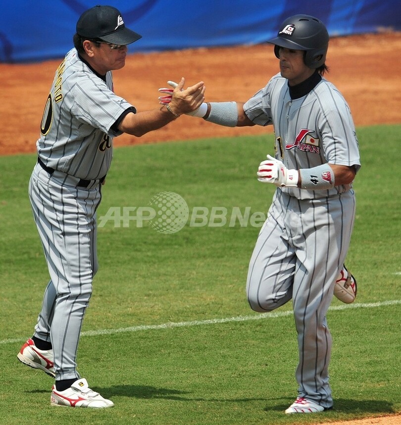 五輪 日本 カナダとの接戦を制し3勝目 2008年8月18日 14:52 発信地:北京/中国 [ 中国・台湾 中国 ] このニュースをシェア ‹ › ❮ 8/11 ❯ 北京五輪野球・一次リーグ、カナダ戦の5回裏に先制となるソロ本塁打を放ち、山本浩二(%%Koji Yamamoto%%)コーチ(左)とハイタッチを交わす日本の稲葉篤紀(%%Atsunori Inaba%%)。(2008年8月18日撮影)(c)AFP/FREDERIC J. BROWN 画像作成中 ! 【8月18日 AFP】(写真追加)北京五輪第11日、野球・一次リーグ、カナダ対日本。試合は日本が1-0でカナダとの接戦を制し、通算成績を3勝2敗とした。(c)AFP 五輪 一覧へ> メディア・報道関係・法人の方向け 写真・動画 購入のお問合せ>