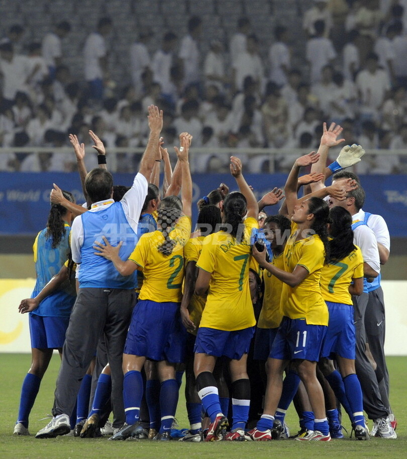 五輪 ブラジル ドイツを下して決勝進出 2008年8月18日 21:49 発信地:上海/中国 [ 中国・台湾 中国 ] このニュースをシェア ‹ › ❮ 1/13 ❯ 試合に勝利しピッチ上で歓喜するブラジルの選手たち。(2008年8月18日撮影)(c)AFP/LIU Jin 画像作成中 ! 【8月18日 AFP】北京五輪第11日、女子サッカー準決勝。ブラジル対ドイツ。試合はブラジルが4-1でドイツを下し、決勝進出を決めた。(c)AFP 五輪 一覧へ> メディア・報道関係・法人の方向け 写真・動画 購入のお問合せ>
