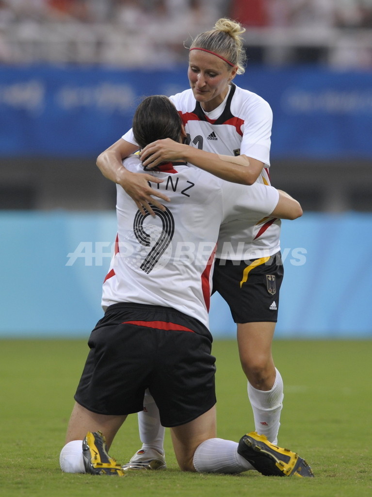 五輪 ブラジル ドイツを下して決勝進出 2008年8月18日 21:49 発信地:上海/中国 [ 中国・台湾 中国 ] このニュースをシェア ‹ › ❮ 12/13 ❯ 前半10分に先制点を挙げてアーニャ・ミッターク(%%Anja Mittag%%、右)と抱き合って歓喜するドイツのビルギット・プリンツ(%%Birgit Prinz%%)。(2008年8月18日撮影)(c)AFP/LIU JIN 画像作成中 ! 【8月18日 AFP】北京五輪第11日、女子サッカー準決勝。ブラジル対ドイツ。試合はブラジルが4-1でドイツを下し、決勝進出を決めた。(c)AFP 五輪 一覧へ> メディア・報道関係・法人の方向け 写真・動画 購入のお問合せ>