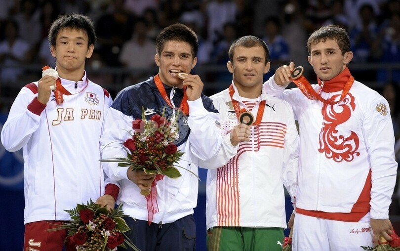 北京五輪第12日、レスリング・男子フリースタイル55キロ級決勝。米国のヘンリー・セユドー(