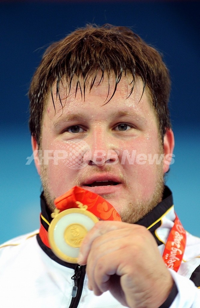 五輪 シュタイナー ウエイトリフティング・男子105キロ超級で金メダル 2008年8月19日 23:00 発信地:北京/中国 [ 中国・台湾 中国 ] このニュースをシェア ‹ › ❮ 1/3 ❯ 金メダルを手にポーズをとるマティアス・シュタイナー。(2008年8月19日撮影)(c)AFP/JUNG YEON-JE 画像作成中 ! 【8月19日 AFP】北京五輪第12日、ウエイトリフティング・男子105キロ超級決勝。ドイツのマティアス・シュタイナー(Matthias Steiner)は、461キロ(スナッチ203キロ、ジャーク258キロ)を記録して金メダルを獲得した。(c)AFP 五輪 一覧へ> メディア・報道関係・法人の方向け 写真・動画 購入のお問合せ>