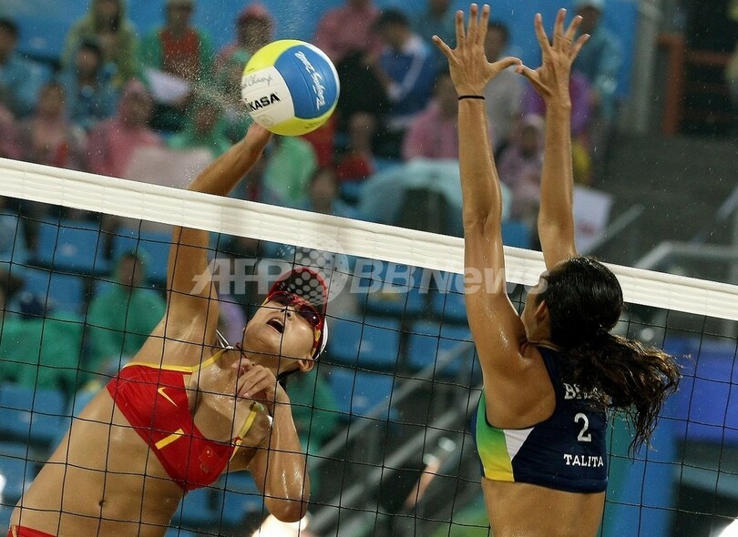 五輪 張希/薛晨組 ビーチバレー・女子で銅メダル 2008年8月21日 12:23 発信地:北京/中国 [ 中国・台湾 中国 ] このニュースをシェア ‹ › ❮ 2/4 ❯ タリタ・ロッシャ(右)のブロックを外してスパイクを放つ薛晨。(2008年8月21日撮影)(c)AFP/THOMAS COEX 画像作成中 ! 【8月21日 AFP】北京五輪第14日、ビーチバレー・女子3位決定戦。中国の張希(Zhang Xi)/薛晨(Xue Chen)組は、ブラジルのレナタ・リベイロ(Renata Ribeiro)/タリタ・ロッシャ(Talita Rocha)組と対戦。張希/薛晨組はセットカウント2-0(21-19、21-17)でリベイロ/ロッシャ組に勝利し、銅メダルを獲得した。(c)AFP 五輪 一覧へ> メディア・報道関係・法人の方向け 写真・動画 購入のお問合せ>