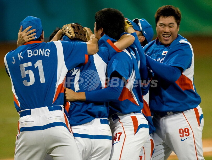 五輪 韓国 キューバを下し金メダル獲得 2008年8月24日 11:35 発信地:北京/中国 [ 中国・台湾 中国 ] このニュースをシェア ‹ › ❮ 5/11 ❯ 北京五輪野球・決勝でキューバを下し歓喜する韓国の選手。(2008年8月23日撮影)(c)AFP/OMAR TORRES 画像作成中 ! 【8月23日 AFP】(24日写真追加)北京五輪・第16日、野球・決勝、キューバ対韓国。試合は韓国が3-2でキューバを下し、金メダルを獲得した。(c)AFP 五輪 一覧へ> メディア・報道関係・法人の方向け 写真・動画 購入のお問合せ>