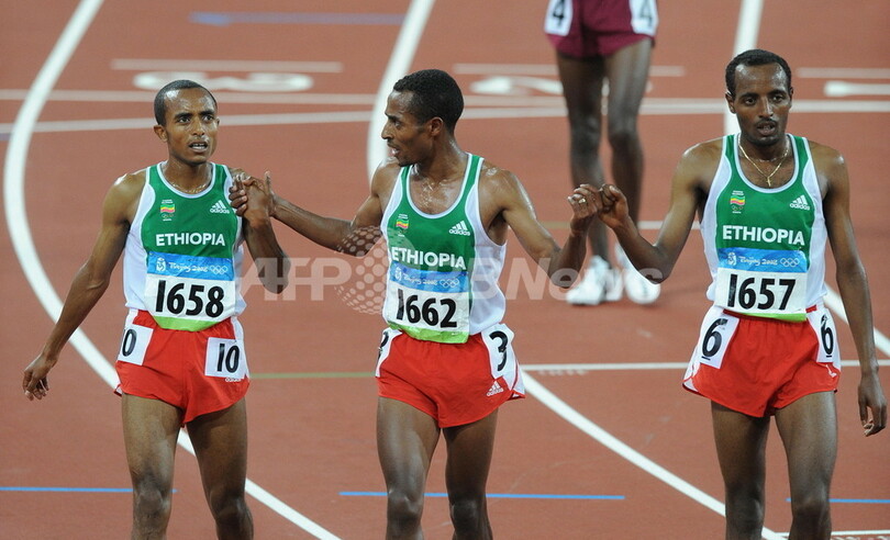【8月24日 AFP】北京五輪第16日、陸上・男子5000メートル決勝。エチオピアのケネニサ・ベケレ(Kenenisa Bekele)は、五輪新記録となる12分57秒82で金メダルを獲得し、男子10000メートルとの2冠を達成した。銀メダルは13分02秒80を記録したケニアのエリウド・キプチョゲ(Eliud Kipchoge)が、銅メダルは13分06秒22を記録したケニアのエドウィン・チェルヨト・ソイ(Edwin Cheruiyot Soi)が獲得した。(c)AFP
