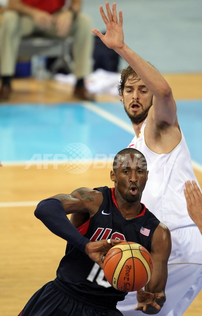 五輪 男子米国 スペイン破り金メダル獲得 2008年8月24日 19:36 発信地:北京/中国 [ 中国・台湾 中国 ] このニュースをシェア ‹ › ❮ 17/23 ❯ 男子バスケットボール決勝で、スペインのパウ・ガソル(%%Pau Gasol%%、右)のディフェンスを前にパスを出す米国のコービー・ブライアント(%%Kobe Bryant%%)。(2008年8月24日撮影)(c)AFP/ANTONIO SCORZA 画像作成中 ! 【8月24日 AFP】(写真追加)北京五輪第17日、男子バスケットボール決勝、スペイン対米国。試合は米国が118-107でスペインを破り、金メダルを獲得した。(c)AFP 五輪 一覧へ> メディア・報道関係・法人の方向け 写真・動画 購入のお問合せ>
