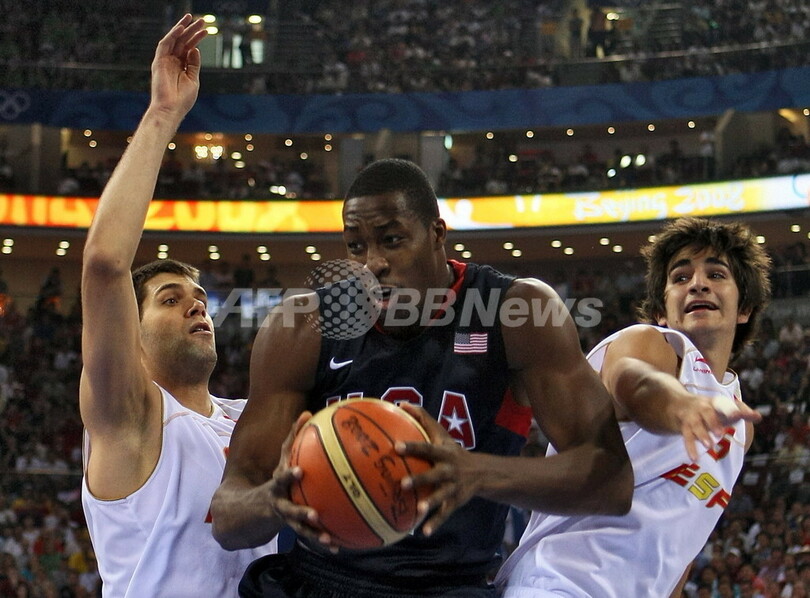 五輪 男子米国 スペイン破り金メダル獲得 2008年8月24日 19:36 発信地:北京/中国 [ 中国・台湾 中国 ] このニュースをシェア ‹ › ❮ 16/23 ❯ 男子バスケットボール決勝で、スペインのフェリペ・レジェス(%%Felipe Reyes%%、左)とリッキー・ルビオ(%%Ricky Rubio%%、右)のディフェンスをかわす米国のドワイト・ハワード(%%Dwight Howard%%)。(2008年8月24日撮影)(c)AFP/OMAR TORRES 画像作成中 ! 【8月24日 AFP】(写真追加)北京五輪第17日、男子バスケットボール決勝、スペイン対米国。試合は米国が118-107でスペインを破り、金メダルを獲得した。(c)AFP 五輪 一覧へ> メディア・報道関係・法人の方向け 写真・動画 購入のお問合せ>