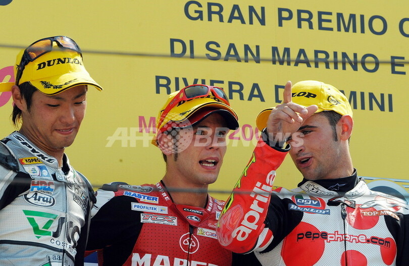 【9月1日 AFP】世界ロードレース選手権(WGP 2008)第13戦・サンマリノGP・250ccクラス決勝。11番グリッドからスタートしたマプフレ・アスパル・チーム(Mapfre Aspar Team)のアルバロ・バウティスタ(Alvaro Bautista)は、43分15秒831を記録してシーズン3勝目を挙げた。