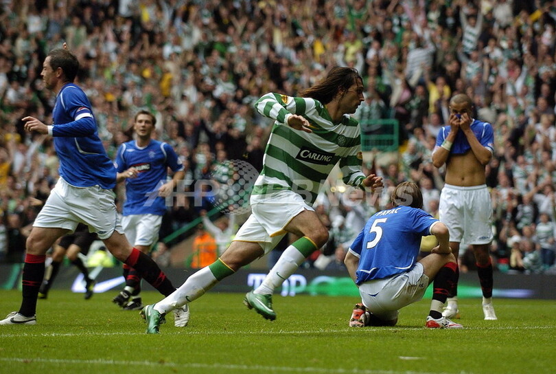 後半に入ると、レンジャーズがケニー・ミラーの2ゴールとペドロ・メンデス(Pedro Mendes)のミドルシュートで立て続けに得点を記録したのに対し、セルティックはロスタイムに中村俊輔(Shunsuke Nakamura)のフリーキックで1点を返すのが精一杯だった。(c)AFP/Alistair Watson