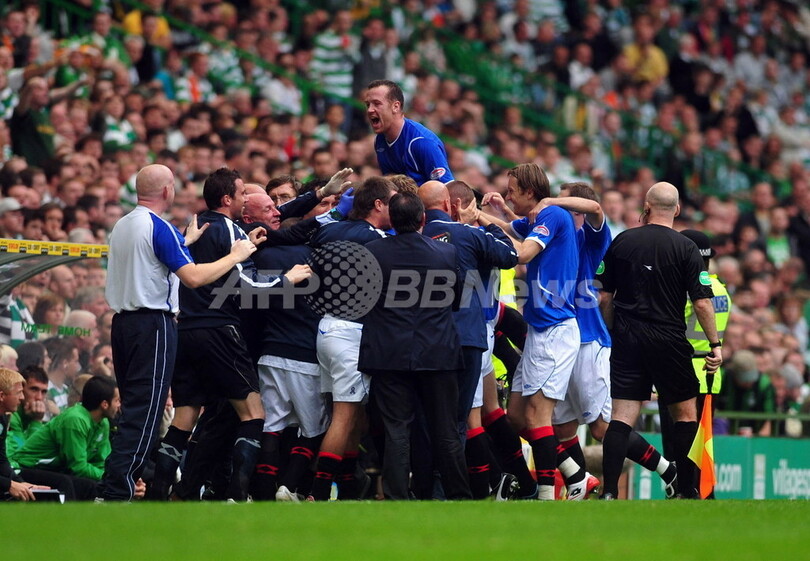 後半に入ると、レンジャーズがケニー・ミラーの2ゴールとペドロ・メンデス(Pedro Mendes)のミドルシュートで立て続けに得点を記録したのに対し、セルティックはロスタイムに中村俊輔(Shunsuke Nakamura)のフリーキックで1点を返すのが精一杯だった。(c)AFP/Alistair Watson