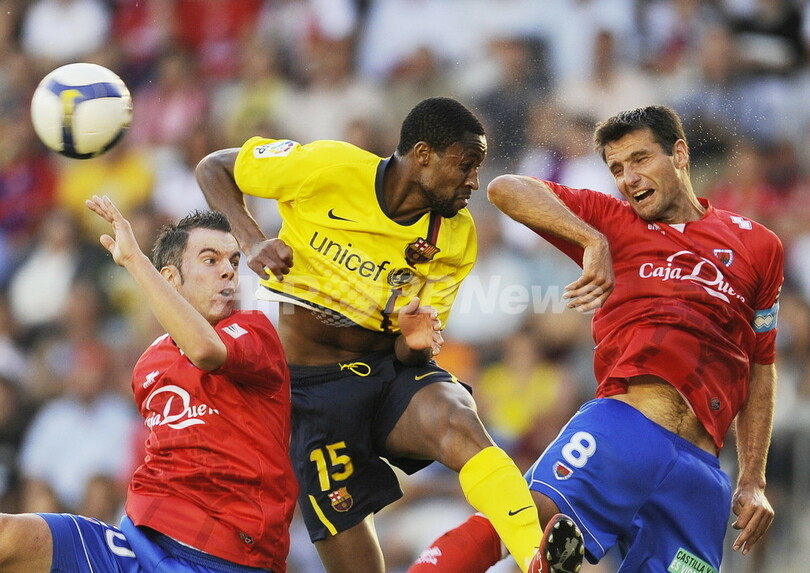 【9月1日 AFP】08-09スペイン1部リーグ第1節、ヌマンシア(CD Numancia)対FCバルセロナ(FC Barcelona)。試合は2部から昇格したばかりのヌマンシアが1-0で勝利を収め、ジョゼップ・グアルディオラ(Josep Guardiola)新監督の下でライバルのレアル・マドリード(Real Madrid)からタイトル奪還を目指すバルセロナは、開幕黒星スタートとなった。