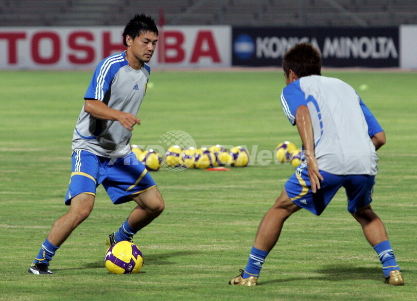 スポーツ サッカー 日本代表 最終予選バーレーン戦に向け最終調整 2008年9月6日 8:14 発信地:マナマ/バーレーン [ 中東・北アフリカ バーレーン ] このニュースをシェア ‹ › ❮ 1/7 ❯ 2010年サッカーW杯南アフリカ大会アジア最終予選のバーレーン戦を控え、チーム練習に参加する日本の松井大輔(%%Daisuke Matsui%%、左)。(2008年9月5日撮影)(c)AFP/ADAM JAN 画像作成中 ! 【9月6日 AFP】2010年サッカーW杯南アフリカ大会(2010 World Cup)アジア最終予選・グループA。最終予選初戦となるアウェーでのバーレーン戦を6日に控えた日本代表は5日、試合会場となるバーレーン・ナショナルスタジアム(Bahrain National Stadium)で最終調整を行った。(c)AFP サッカー 一覧へ> メディア・報道関係・法人の方向け 写真・動画 購入のお問合せ>