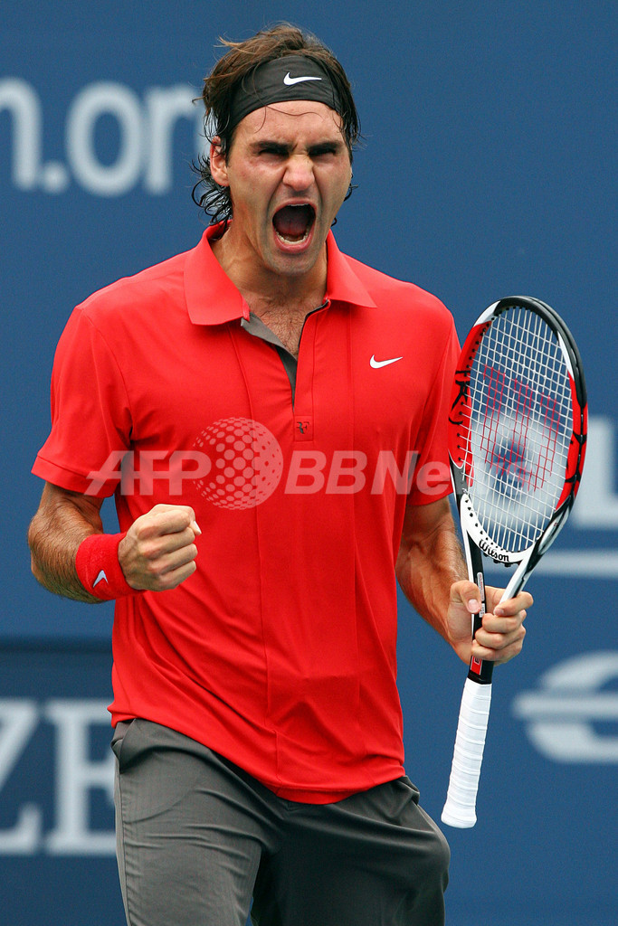 【9月7日 AFP】(記事更新、写真追加)全米オープンテニス2008(The US Open Tennis Championships 2008)男子シングルス準決勝。大会第2シードのロジャー・フェデラー(Roger Federer、スイス)は、大会第3シードのノバク・ジョコビッチ(Novak Djokovic、セルビア)と対戦。フェデラーはセットカウント3-1(6-3、5-7、7-5、6-2)でジョコビッチを下し、決勝進出を決めた。
