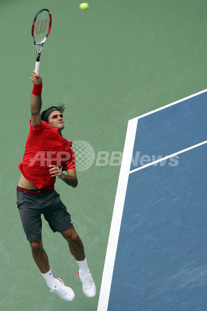 【9月7日 AFP】(記事更新、写真追加)全米オープンテニス2008(The US Open Tennis Championships 2008)男子シングルス準決勝。大会第2シードのロジャー・フェデラー(Roger Federer、スイス)は、大会第3シードのノバク・ジョコビッチ(Novak Djokovic、セルビア)と対戦。フェデラーはセットカウント3-1(6-3、5-7、7-5、6-2)でジョコビッチを下し、決勝進出を決めた。