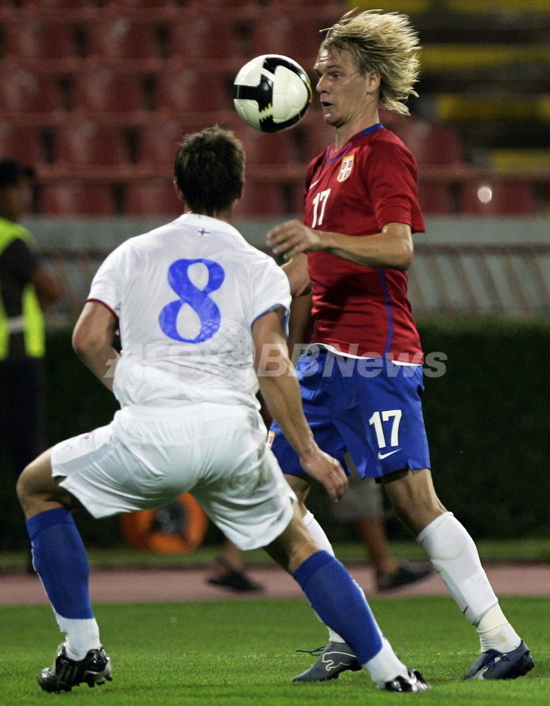 スポーツ サッカー セルビア フェロー諸島を下し白星発進 2008年9月7日 10:35 発信地:べオグラード/セルビア [ ヨーロッパ セルビア ] このニュースをシェア ‹ › ❮ 2/3 ❯ ボールをキープするセルビアのミロス・クラシッチ(%%Milos Krasic%%、右)。(2008年9月6日撮影)(c)AFP/ANDREJ ISAKOVIC 画像作成中 ! 【9月7日 AFP】2010年サッカーW杯南アフリカ大会(2010 World Cup)欧州予選・グループ7、セルビア対フェロー諸島。試合はセルビアが2-0でフェロー諸島を下し、初戦を白星で飾った。(c)AFP サッカー 一覧へ> メディア・報道関係・法人の方向け 写真・動画 購入のお問合せ>