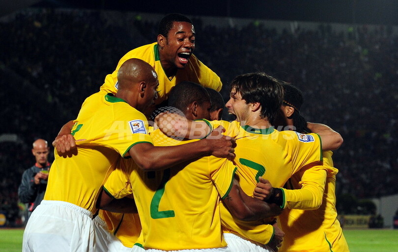 スポーツ サッカー ブラジル アウェーでチリに快勝し2位浮上 2008年9月8日 12:41 発信地:サンティアゴ/チリ [ 中南米 チリ ] このニュースをシェア ‹ › ❮ 1/13 ❯ 得点に歓喜するロビーニョ(%%Robinho%%、上)らブラジルの選手。(2008年9月7日撮影)(c)AFP/Martin BERNETTI 画像作成中 ! 【9月8日 AFP】2010年サッカーW杯南アフリカ大会(2010 World Cup)南米予選第7節、チリ対ブラジル。試合はブラジルが3-0で勝利し、通算成績を3勝1敗3分けとして2位に浮上した。(c)AFP サッカー 一覧へ> メディア・報道関係・法人の方向け 写真・動画 購入のお問合せ>