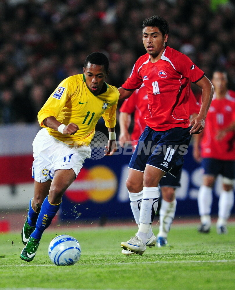 スポーツ サッカー ブラジル アウェーでチリに快勝し2位浮上 2008年9月8日 12:41 発信地:サンティアゴ/チリ [ 中南米 チリ ] このニュースをシェア ‹ › ❮ 10/13 ❯ チリのガリー・メデル(%%Gary Medel%%、右)をかわすブラジルのロビーニョ(%%Robinho%%)。(2008年9月7日撮影)(c)AFP/Martin BERNETTI 画像作成中 ! 【9月8日 AFP】2010年サッカーW杯南アフリカ大会(2010 World Cup)南米予選第7節、チリ対ブラジル。試合はブラジルが3-0で勝利し、通算成績を3勝1敗3分けとして2位に浮上した。(c)AFP サッカー 一覧へ> メディア・報道関係・法人の方向け 写真・動画 購入のお問合せ>