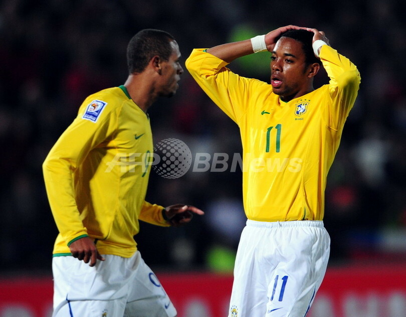 スポーツ サッカー ブラジル アウェーでチリに快勝し2位浮上 2008年9月8日 12:41 発信地:サンティアゴ/チリ [ 中南米 チリ ] このニュースをシェア ‹ › ❮ 7/13 ❯ 決定機を逃して悔しがるブラジルのロビーニョ(%%Robinho%%、右)。(2008年9月7日撮影)(c)AFP/Martin BERNETTI 画像作成中 ! 【9月8日 AFP】2010年サッカーW杯南アフリカ大会(2010 World Cup)南米予選第7節、チリ対ブラジル。試合はブラジルが3-0で勝利し、通算成績を3勝1敗3分けとして2位に浮上した。(c)AFP サッカー 一覧へ> メディア・報道関係・法人の方向け 写真・動画 購入のお問合せ>