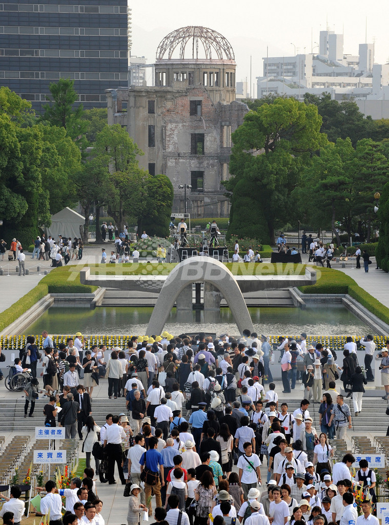 【8月6日 AFP】広島は6日、63回目の原爆の日を迎えた。広島市中区の平和記念公園(Peace Memorial Park)では午前8時から「原爆死没者慰霊式・平和祈念式」(平和記念式典、Peace Memorial Ceremony)が営まれ、福田康夫(Yasuo Fukuda)首相ら政府高官など約4万5000人が参列した。