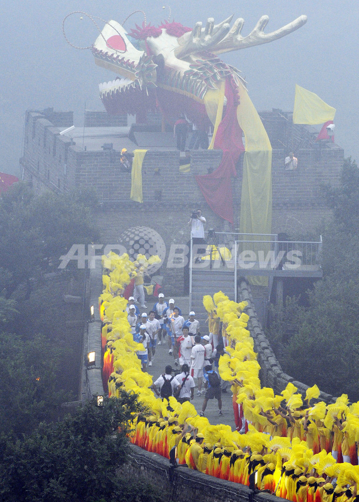 五輪 霧にかすむ万里の長城で聖火リレー 2008年8月7日 18:10 発信地:北京/中国 [ 中国・台湾 中国 ] このニュースをシェア ‹ › ❮ 1/9 ❯ 中国・北京(Beijing)郊外の万里の長城「八達嶺(Badaling)」で、ボランティアが整列するなか進む北京五輪の聖火リレー(2008年8月7日撮影)。(c)AFP/TOSHIFUMI KITAMURA 画像作成中 ! 【8月7日 AFP】(一部更新、写真追加)北京五輪開幕まであと1日と迫った7日、世界各地を回ってきた聖火リレーが北京(Beijing)郊外にある万里の長城の「八達嶺(Badaling)」で行われた。 五輪に参加する選手らの健康への懸念となっているスモッグは、この日も北京の空を覆ったが、聖火リレーの熱狂に水をさすことはなかった。 八達嶺の塔には巨大な龍の模型が飾られ、黄色のTシャツ姿のボランティア数千人が見守る中を、268人のリレー走者が長城の14キロあまりを駆け抜けた。(c)AFP 五輪 一覧へ> メディア・報道関係・法人の方向け 写真・動画 購入のお問合せ>
