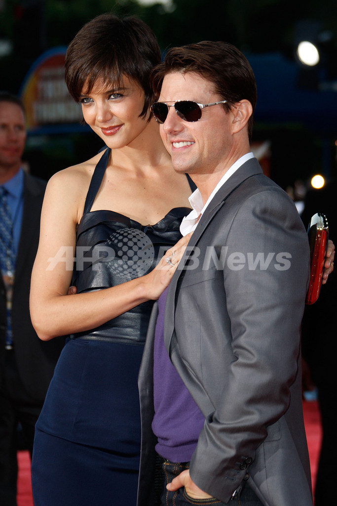 【8月12日 AFP】俳優のトム・クルーズ(Tom Cruise)と女優のケイティ・ホームズ(Katie Holmes)夫妻が11日、米カリフォルニア(California)州ロサンゼルス(Los Angeles)のマン・ビレッジ・シアター(Mann Village Theater)で開催されたドリームワークス・ピクチャーズ(DreamWorks Pictures)配給の映画『トロピック・サンダー/史上最低の作戦(Tropic Thunder)』のプレミア上映会に登場した。(c)AFP/Getty Images