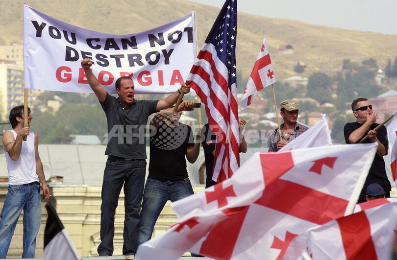 サーカシビリ大統領は集まった10万人の聴衆の前で「グルジアはCISを脱退することを決定した。ウクライナやそのほかの加盟国もわれわれの決定に続くよう求める。永遠にさらばだ、ソビエト連邦よ」と語った。(c)AFP
