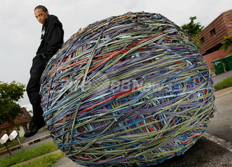 【8月15日 AFP】米フロリダ(Florida)州に住む男性が、ゴム製のバンドを毛糸玉のようにくるくると球状に巻き付けた「ゴムバンドボール」で、ギネス世界記録の更新を目指している。
