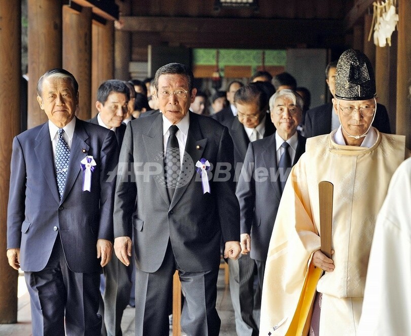 一方、靖国神社には太田誠一(Seiichi Ota)農水相、小泉純一郎(Junichiro Koizumi)元首相が参拝した。また安倍晋三(Shinzo Abe)前首相、保岡興治(Okiharu Yasuoka)法相も訪れた。(c)AFP