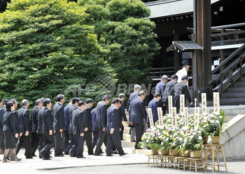 一方、靖国神社には太田誠一(Seiichi Ota)農水相、小泉純一郎(Junichiro Koizumi)元首相が参拝した。また安倍晋三(Shinzo Abe)前首相、保岡興治(Okiharu Yasuoka)法相も訪れた。(c)AFP
