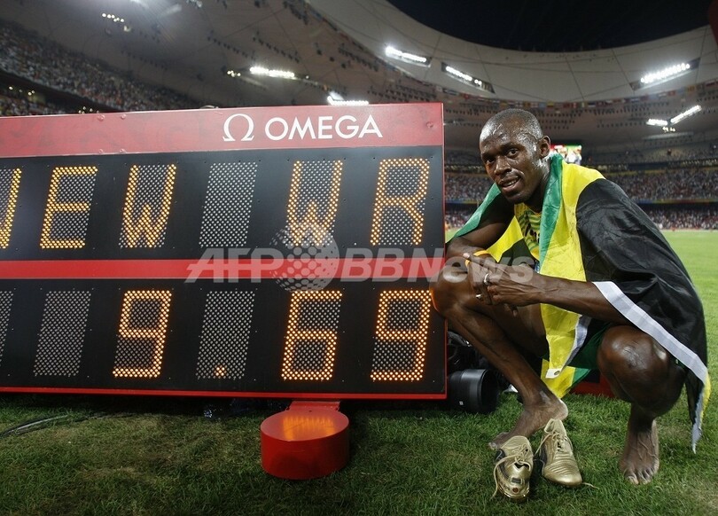 五輪 ボルト 世界記録で金メダル 陸上・男子100メートル 2008年8月16日 23:37 発信地:北京/中国 [ 中国・台湾 中国 ] このニュースをシェア ‹ › ❮ 5/18 ❯ 北京(Beijing)の国家体育場(National Stadium)で行われた北京五輪・男子100メートル決勝で優勝し、9秒69の世界記録を表示した時計の前でポーズをとるジャマイカのウサイン・ボルト(Usain Bolt)(2008年8月16日撮影)。(c)AFP/ADRIAN DENNIS 画像作成中 ! 【8月17日 AFP】(写真追加)北京五輪第9日、陸上・男子100メートル決勝。ジャマイカのウサイン・ボルト(Usain Bolt)は、9秒69の世界記録で金メダルを獲得した。(c)AFP 五輪 一覧へ> メディア・報道関係・法人の方向け 写真・動画 購入のお問合せ>