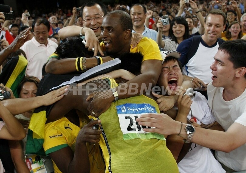 五輪 ボルト 世界記録で金メダル 陸上・男子100メートル 2008年8月16日 23:37 発信地:北京/中国 [ 中国・台湾 中国 ] このニュースをシェア ‹ › ❮ 4/18 ❯ 北京(Beijing)の国家体育場(National Stadium)で行われた北京五輪・男子100メートル決勝で優勝し、ファンらと喜び合うジャマイカのウサイン・ボルト(Usain Bolt)(2008年8月16日撮影)。(c)AFP/ADRIAN DENNIS 画像作成中 ! 【8月17日 AFP】(写真追加)北京五輪第9日、陸上・男子100メートル決勝。ジャマイカのウサイン・ボルト(Usain Bolt)は、9秒69の世界記録で金メダルを獲得した。(c)AFP 五輪 一覧へ> メディア・報道関係・法人の方向け 写真・動画 購入のお問合せ>